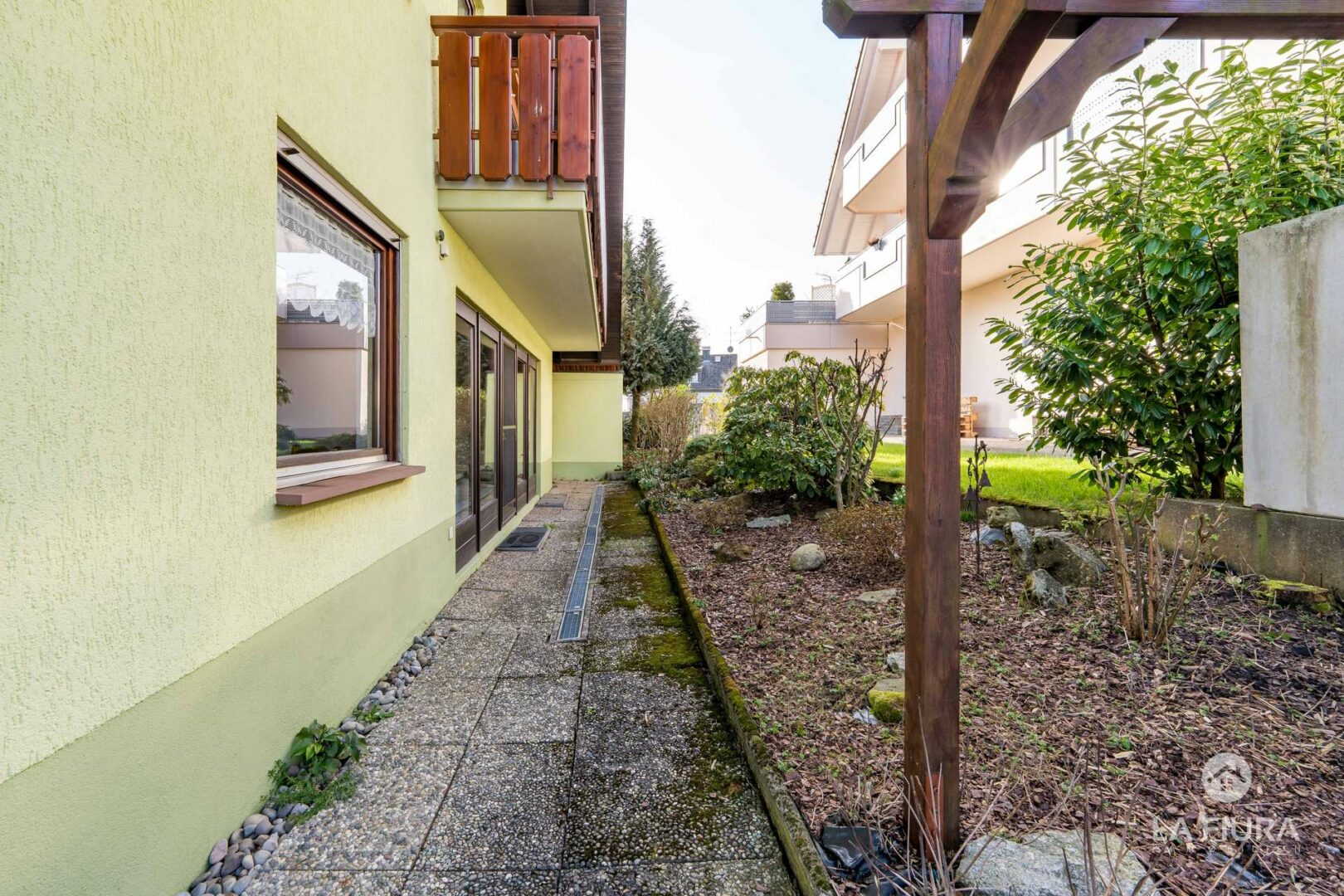 Der Außenbereich überzeugt durch einen pflegeleichten Garten, der Ihnen per Sondernutzungsrecht exklusiv zur Verfügung steht. Direkt vom Wohnbereich aus zugänglich, bietet er ausreichend Platz für entspannte Stunden im Freien – sei es beim Grillen, Sonnenbaden oder Spielen mit Kindern. Die überschaubare Größe sorgt für geringen Pflegeaufwand bei gleichzeitig hoher Aufenthaltsqualität.