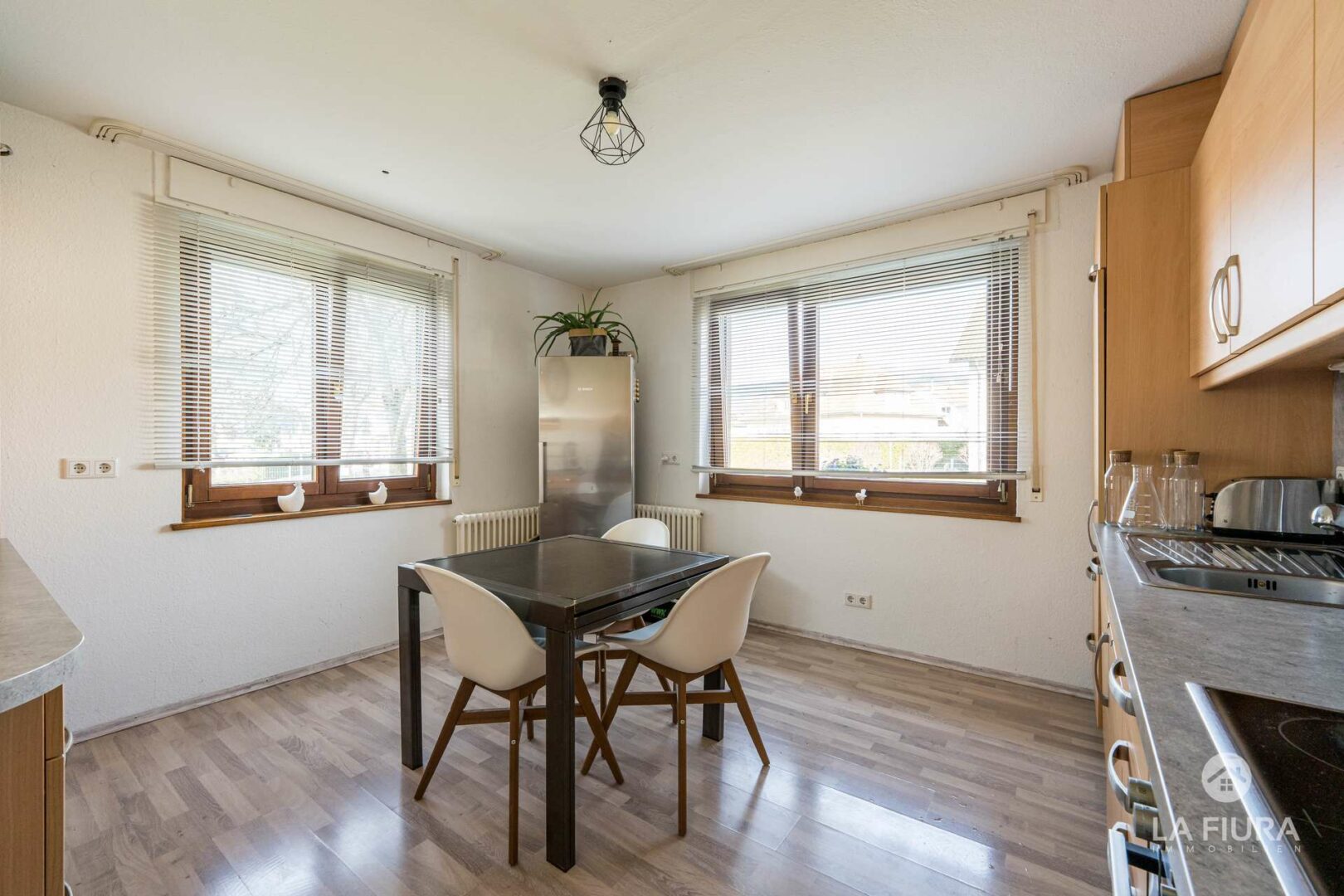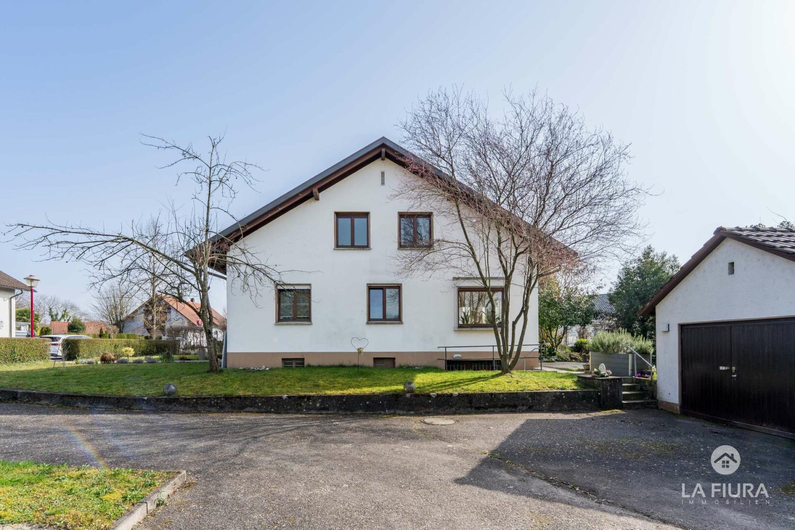 Das Haus wurde 1978 in massiver Bauweise als Zweifamilienhaus errichtet und verfügt über zwei abgeschlossene Dreizimmerwohnungen. Derzeit wird die Immobilie als zusammenhängendes Einfamilienhaus mit einer Gesamtwohnfläche von ca. 166 m² genutzt, wodurch sich flexible Nutzungsmöglichkeiten ergeben. Die Wohnfläche verteilt sich auf zwei Ebenen, wovon auf das Erdgeschoss ca. 94 m² entfallen.