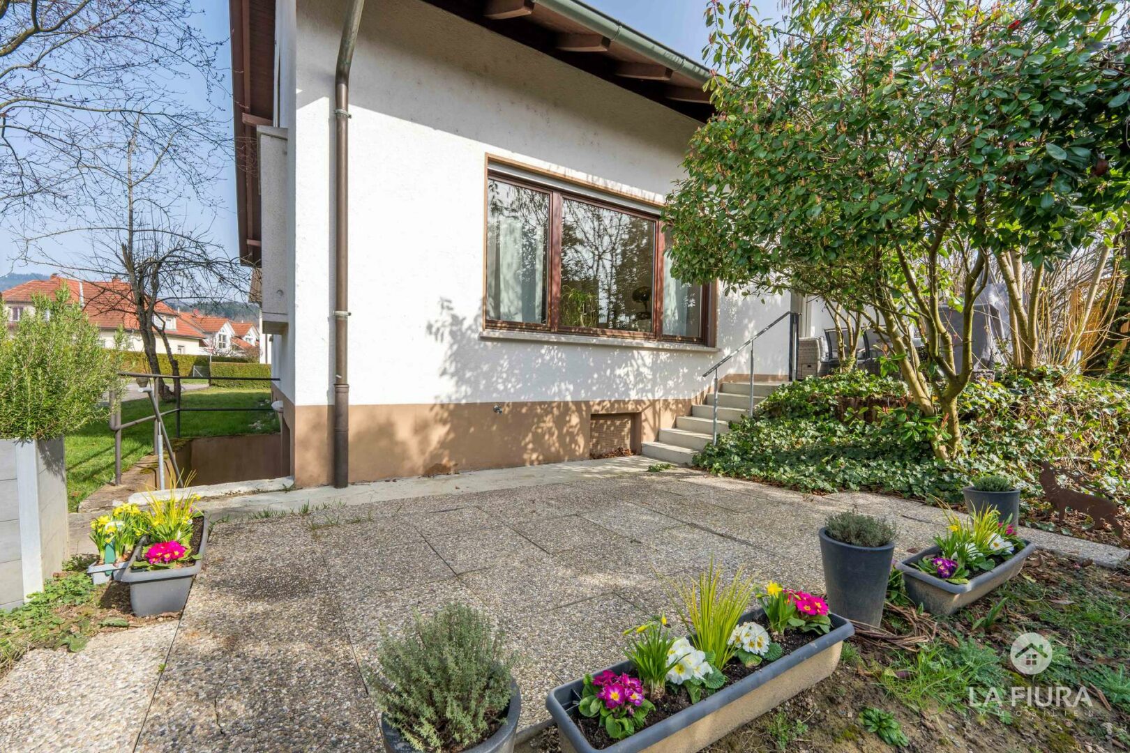 Zusätzlich ist das Gebäude voll unterkellert und verfügt über einen Dachspeicher, der weiteren Stauraum bietet. Zwei Terrassen direkt am Haus sowie ein überdachter Balkon schaffen angenehme Aufenthaltsbereiche im Freien und verbinden das Haus harmonisch mit dem großzügigen Garten.