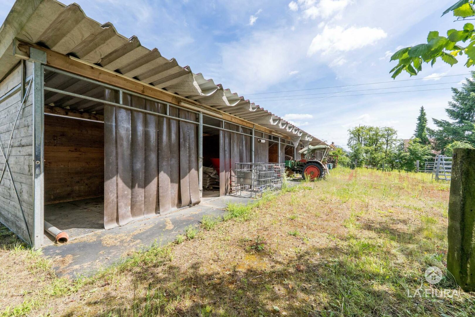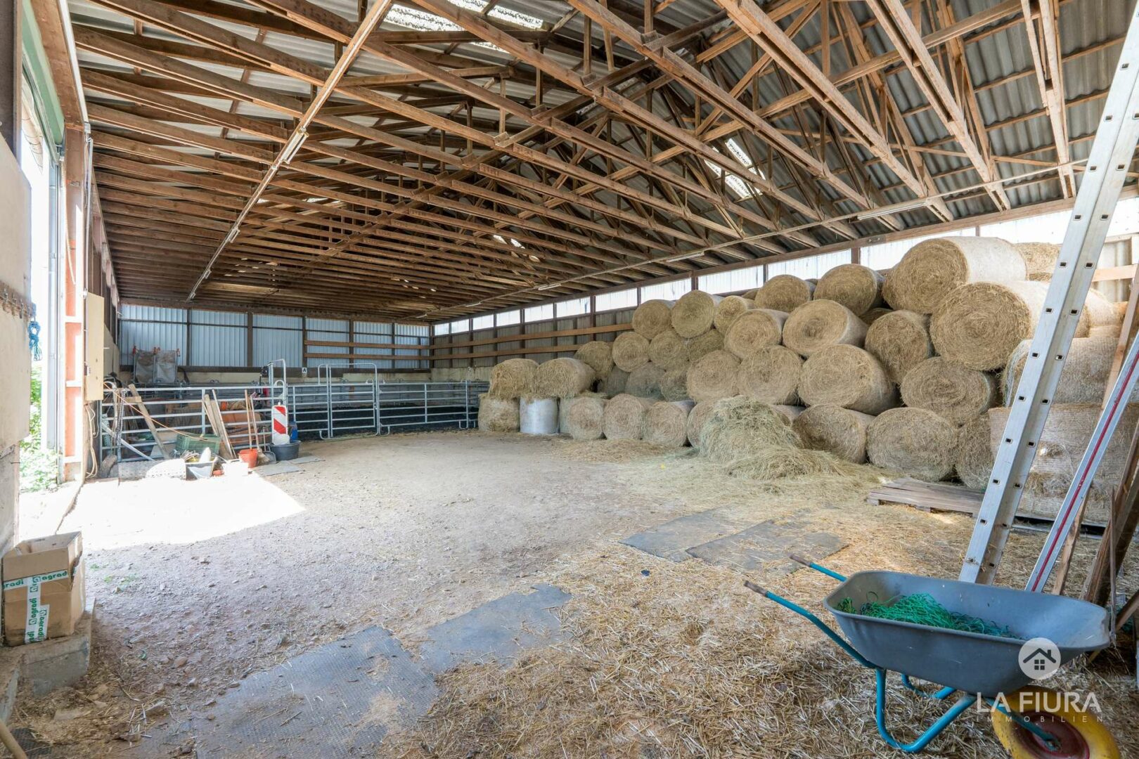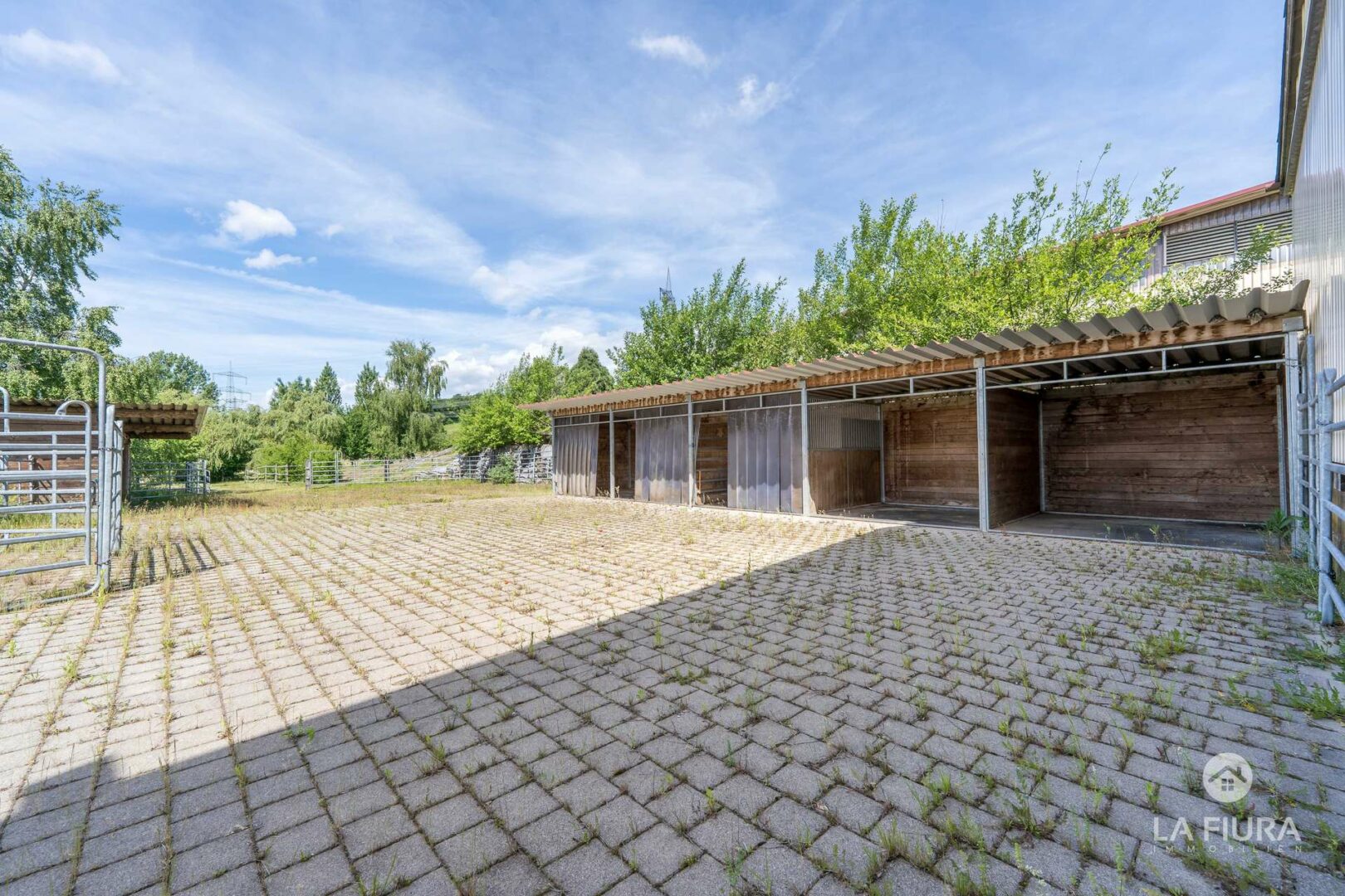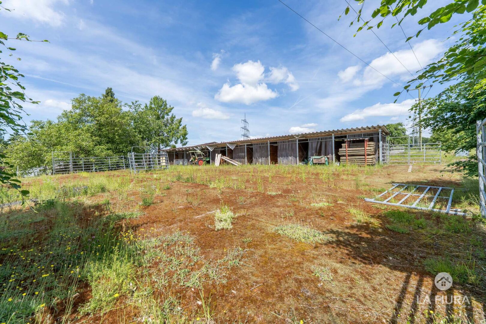In einer ca. 50 Jahre alte Lagerhalle mit elektrischem Tor befindet sich ein Roundpen mit Textilschnitzeln sowie das Heulager des Hofs. An verschiedenen Standorten befinden sich zahlreiche Pferdeboxen für ca. 30-40 Pferde. Nutzen Sie bereits genehmigte Baupläne für weitere Boxen, sodass Sie die Anzahl der Pferde auf dem Hof um ca. 25 Tiere erweitern und somit die Ertragsmöglichkeiten steigern können.