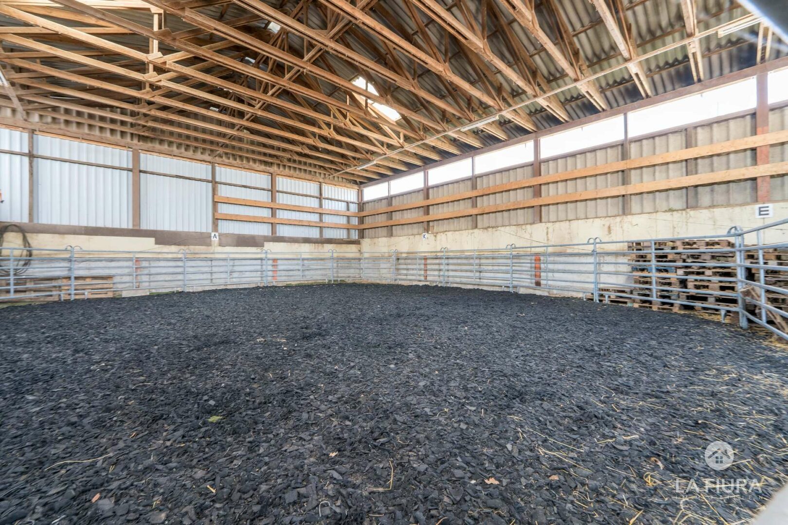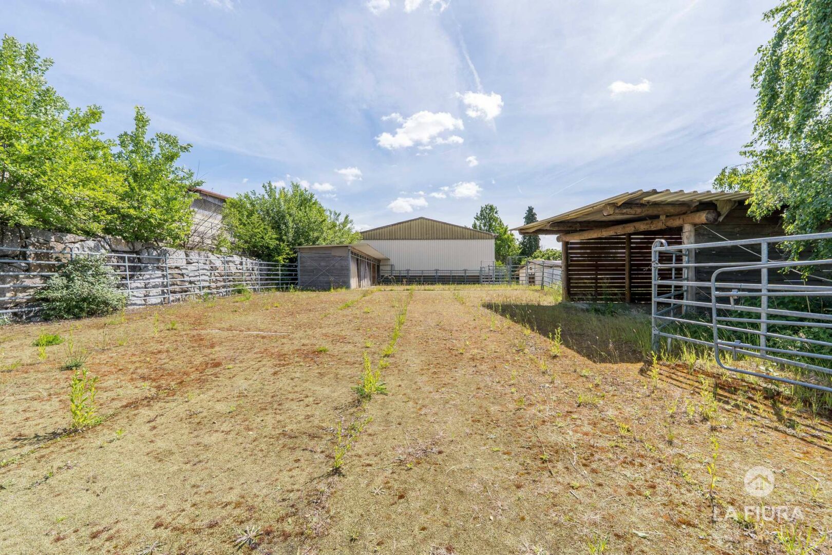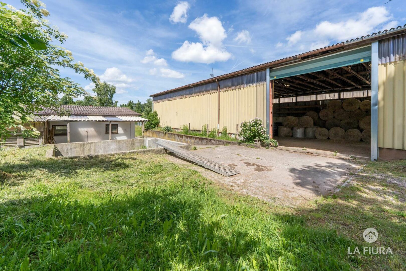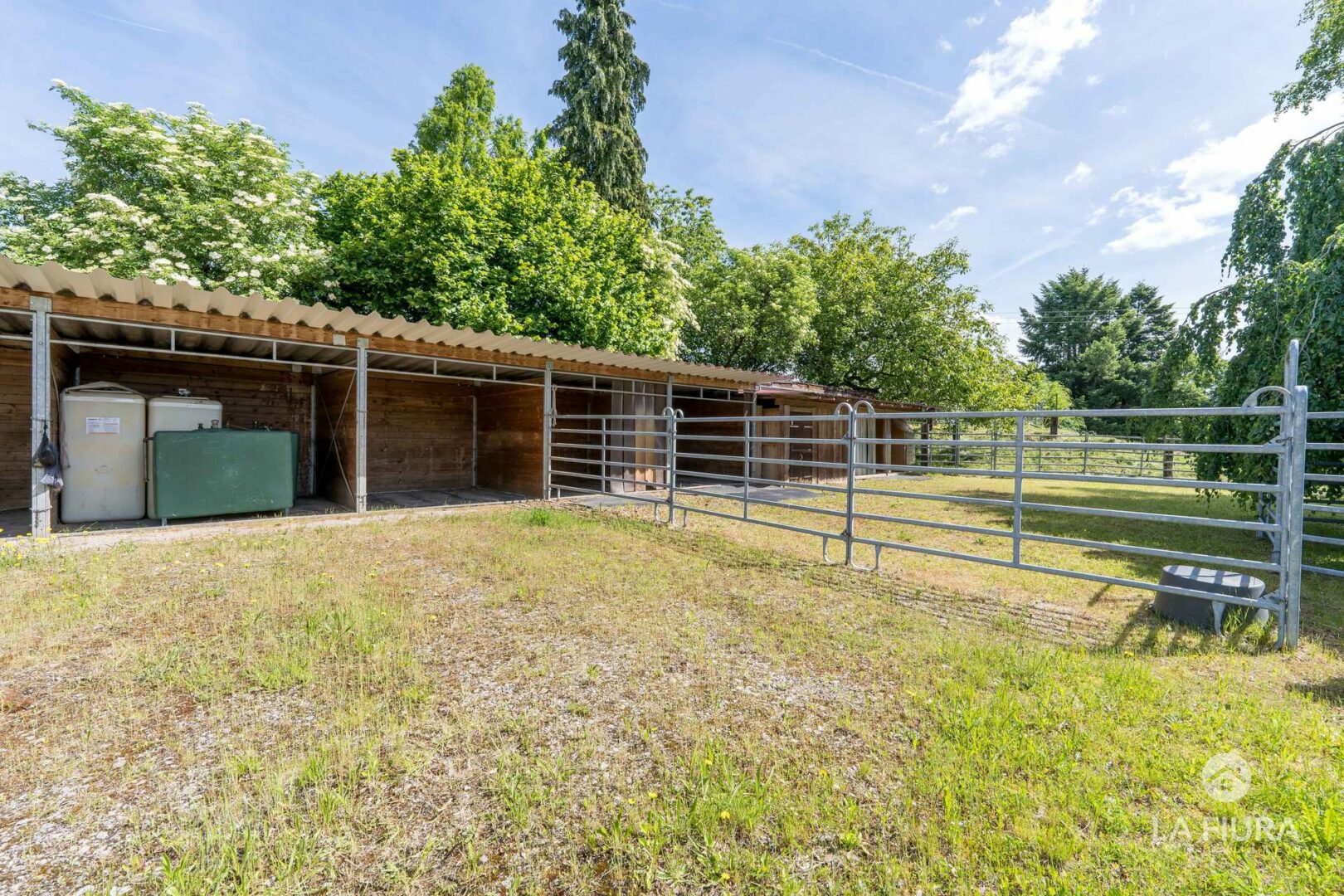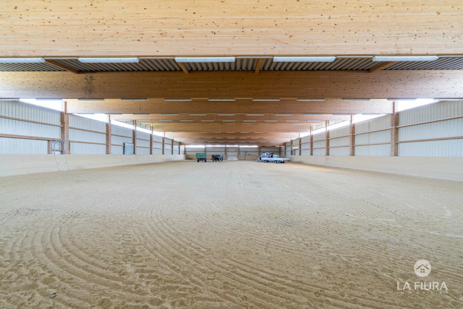 In einer ca. 50 Jahre alte Lagerhalle mit elektrischem Tor befindet sich ein Roundpen mit Textilschnitzeln sowie das Heulager des Hofs. An verschiedenen Standorten befinden sich zahlreiche Pferdeboxen für ca. 30-40 Pferde. Nutzen Sie bereits genehmigte Baupläne für weitere Boxen, sodass Sie die Anzahl der Pferde auf dem Hof um ca. 25 Tiere erweitern und somit die Ertragsmöglichkeiten steigern können.