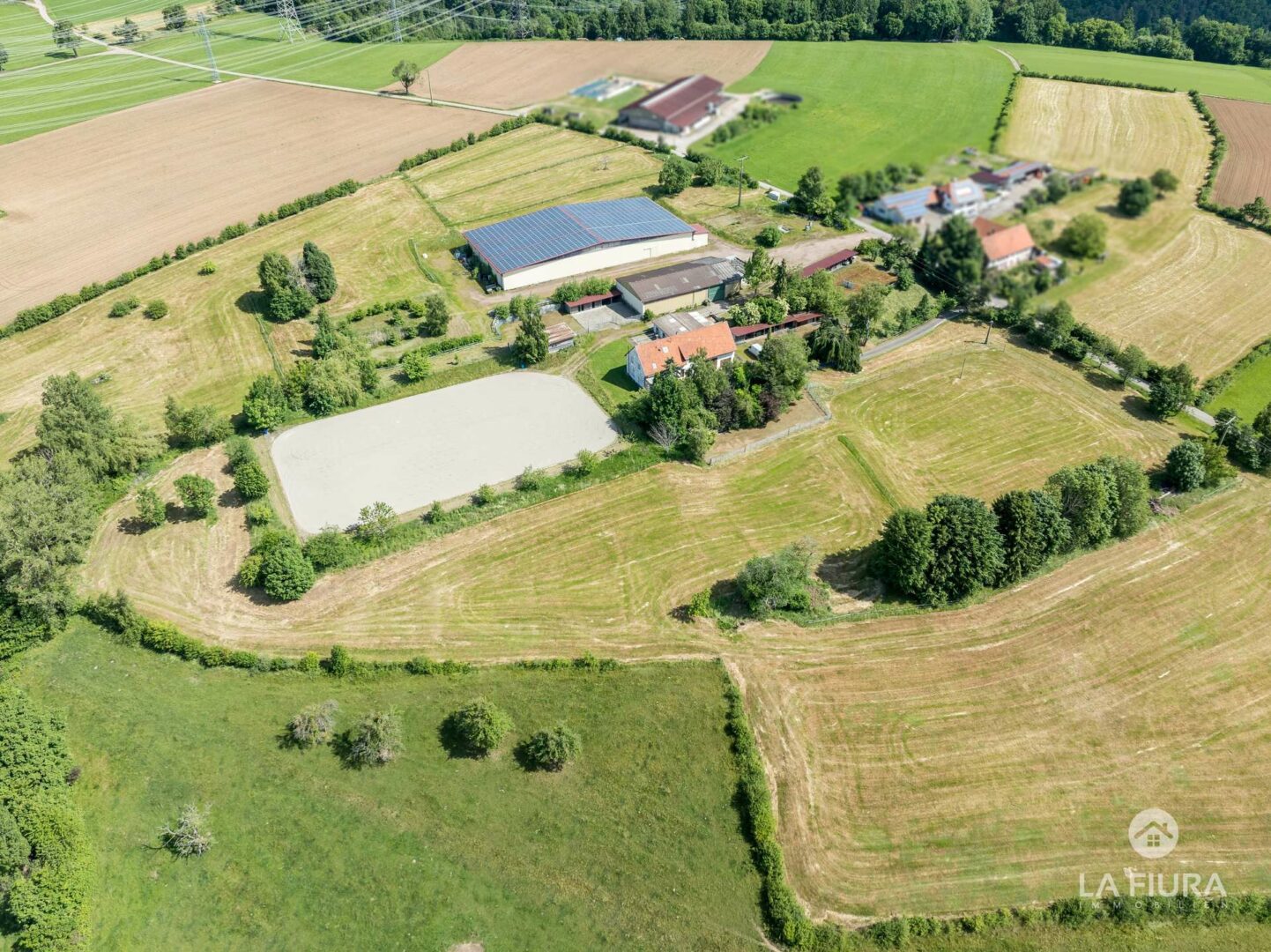 Auf einer Fläche von über 62.000 qm erwartet Sie eine Anlage voller Möglichkeiten. Diese ist mit kurzen und durchdachten Wegen zwischen Weide und Pferdebox konzipiert, was einen effizienten Betrieb ermöglicht.