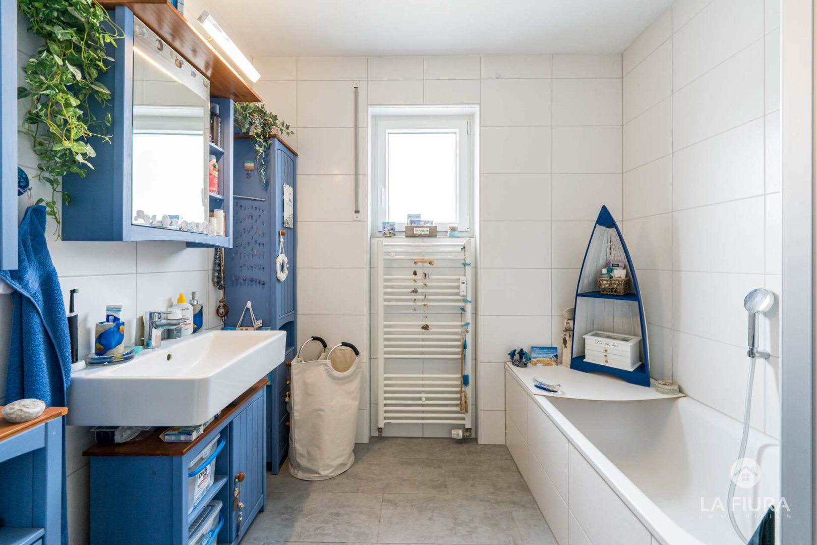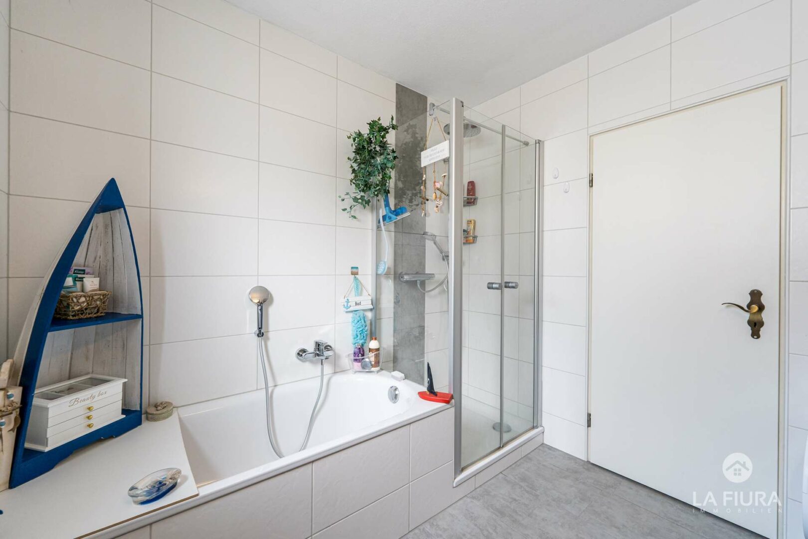 Im östlichen Teil der Wohnung befindet sich der private Rückzugsbereich. Hier liegen zwei Schlafzimmer mit ca. 12 m² und ca. 14 m², die sich hervorragend als Kinder-, Gäste- oder Arbeitszimmer eignen. Das modernisierte Tageslichtbad ist zeitlos in Weiß- und Grautönen gehalten und mit Dusche sowie Badewanne ausgestattet. Ein separates WC ergänzt diesen Bereich und sorgt für zusätzlichen Komfort im Alltag.