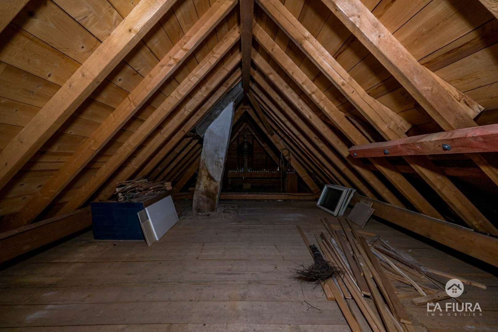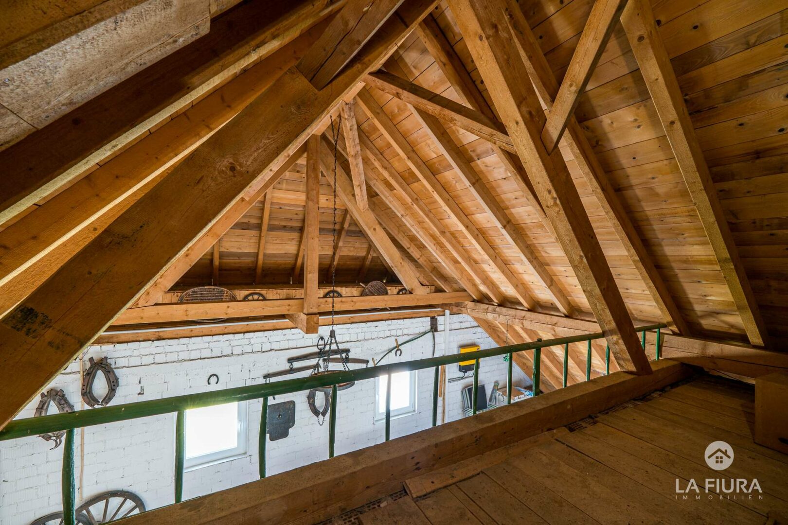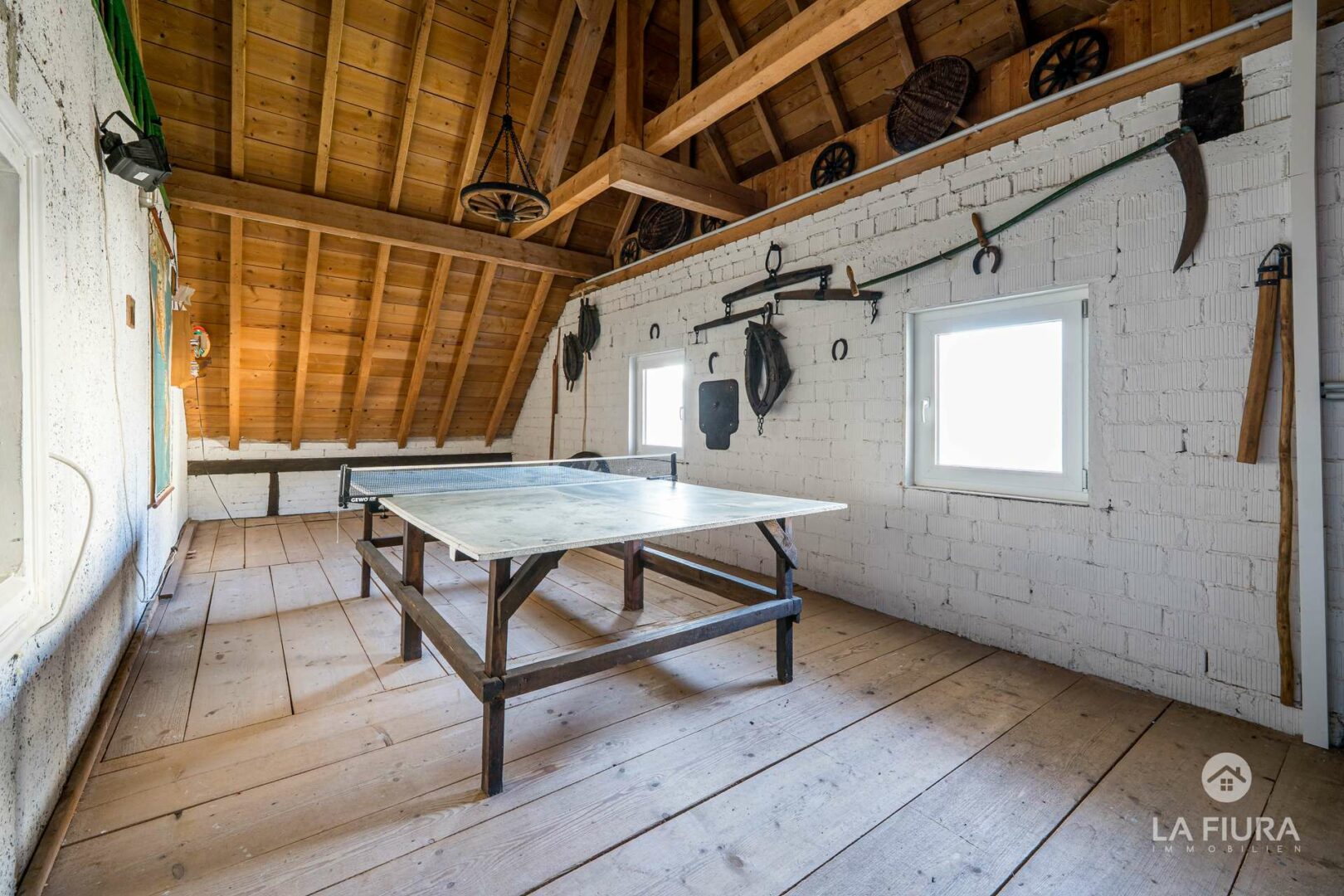 Das Obergeschoss besitzt drei weitere Schlafzimmer mit zwei ergänzenden Räumen, die z. B. als Ankleidezimmer dienen können. Ein Highlight auf diesem Stockwerk ist u. a. ein Hobby-Bereich, der aus der ursprünglichen Scheune entstand. Ein abenteuerlicher und gemütlicher Ort, nicht nur für Kinder, zum spielen und toben. Mehr zu entdecken gibt es außerdem auf dem Dachboden, der über eine Holzleiter vom Hobbyraum zugänglich ist.